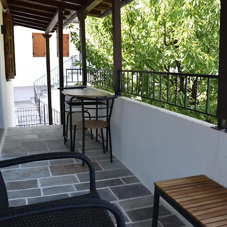 Apartament Dendrokipos jest wyposażony w urządzenia do samodzielnego przygotowywania posiłków takie jak czajnik elektryczny, lodówka i przybory kuchenne. Taras jest dostępny dla gości na relaks po męczącym dniu.